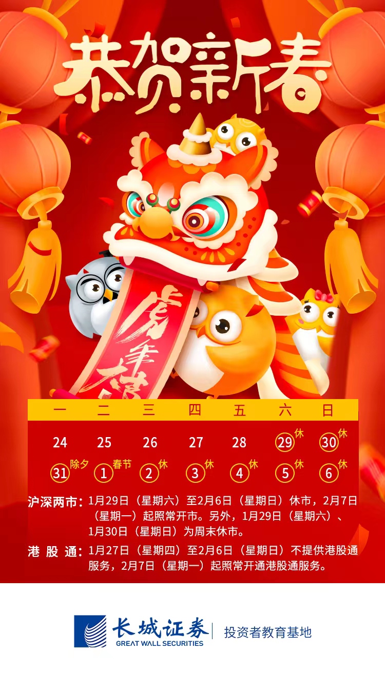 【节假日休市提示】春节休市及港股通服务安排