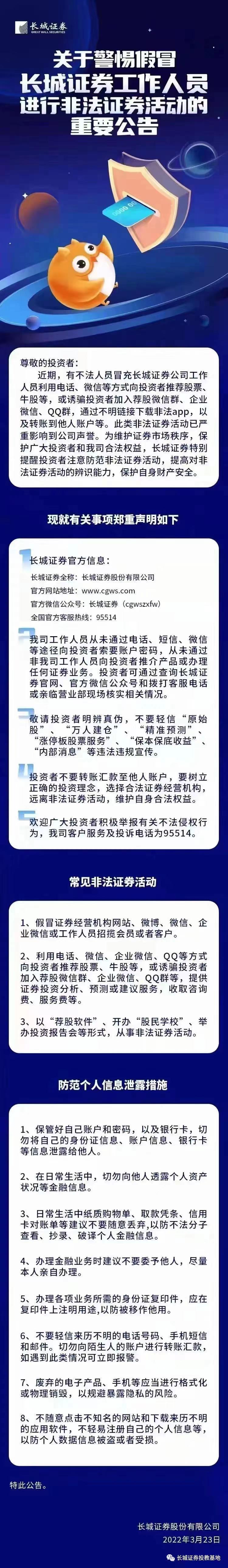 【城·原创】关于警惕假冒长城证券工作人员进行非法证券活动的重要公告