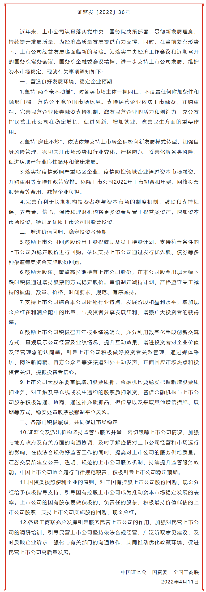 【长·分享】证监会发布|证监会 国资委 全国工商联关于进一步支持上市公司健康发展的通知