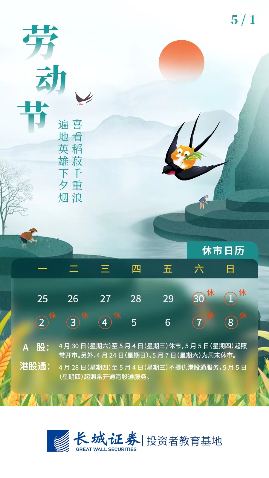【城·原创】劳动节假期休市日历