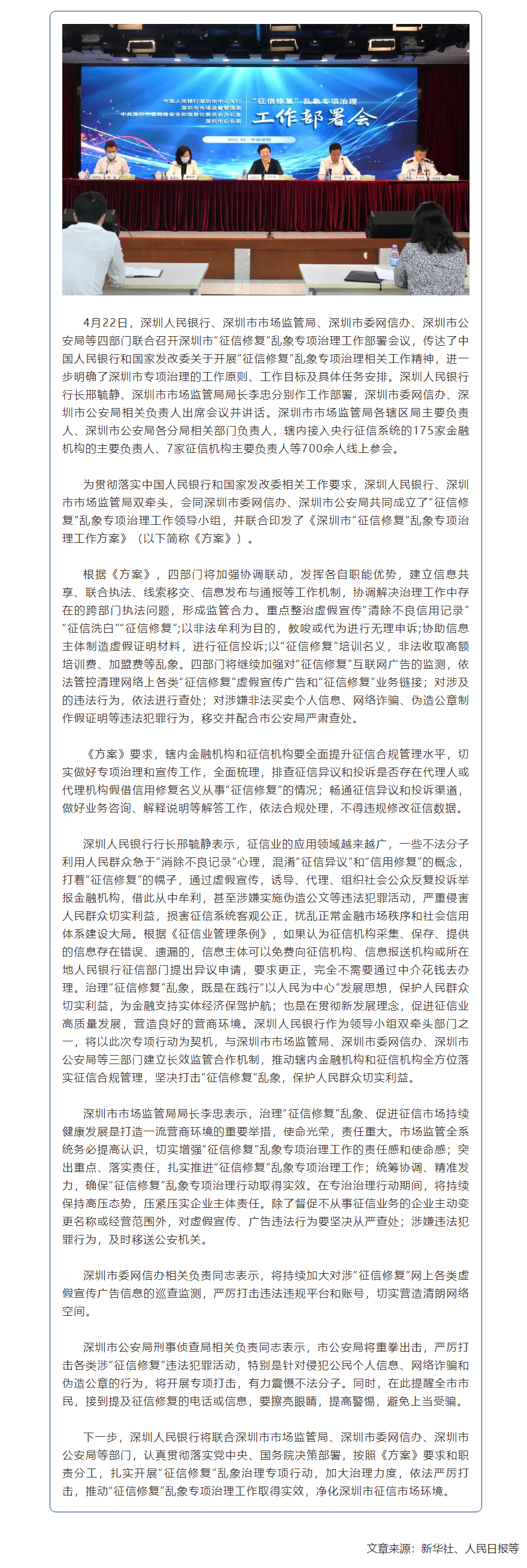【长·分享】深圳市“征信修复”乱象专项治理丨①深圳人民银行等四部门联合召开深圳市“征信修复”乱象专项治理工作部署会议