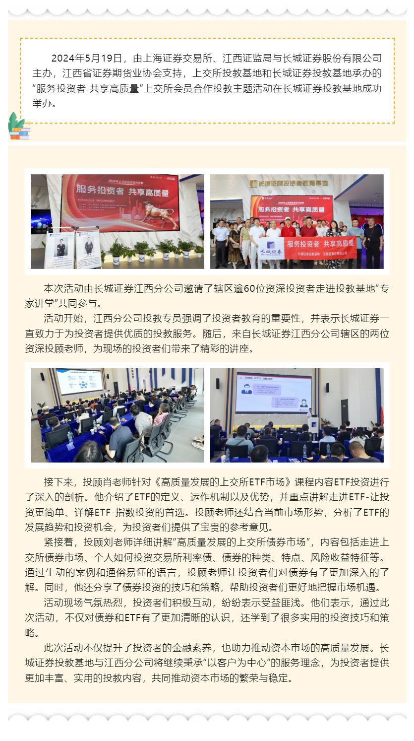 【城·活动】5·15专栏 _ “服务投资者 共享高质量”上交所2024年会员投教合作活动走进长城证券