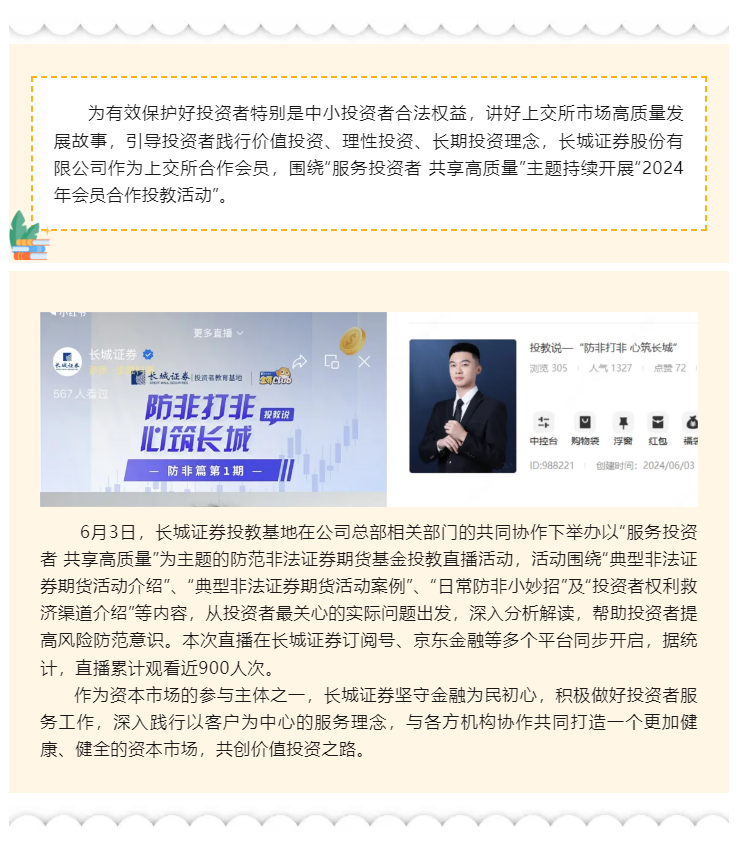 【城·活动】全国防范非法证券期货基金宣传月_投教说“防非打非 心筑长城”投教直播活动