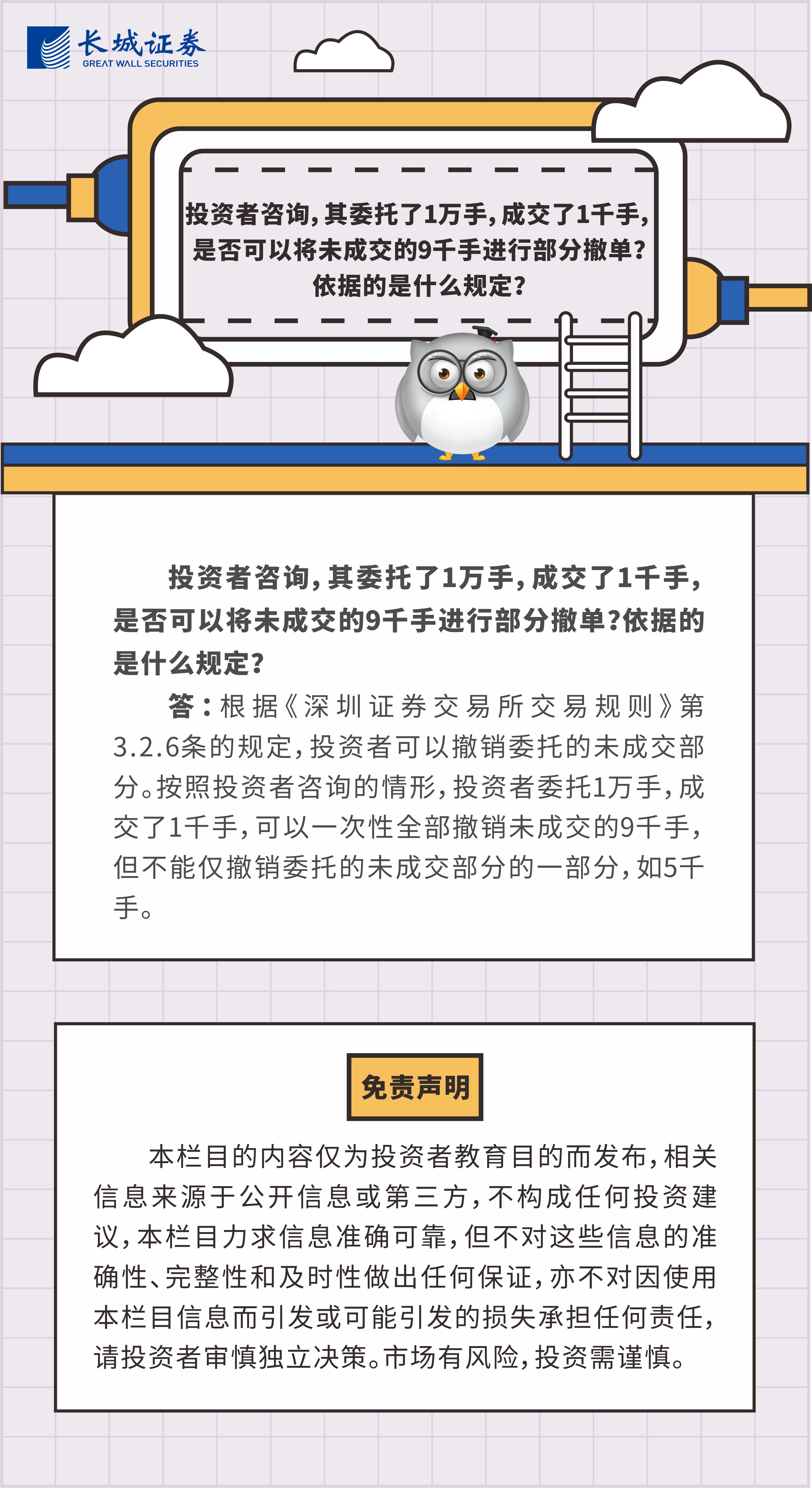 54 投资者咨询,其委托了1万手,成交了1千手,是否可以将未成交的9千手进行部分撤单?依据的是什么规定?
