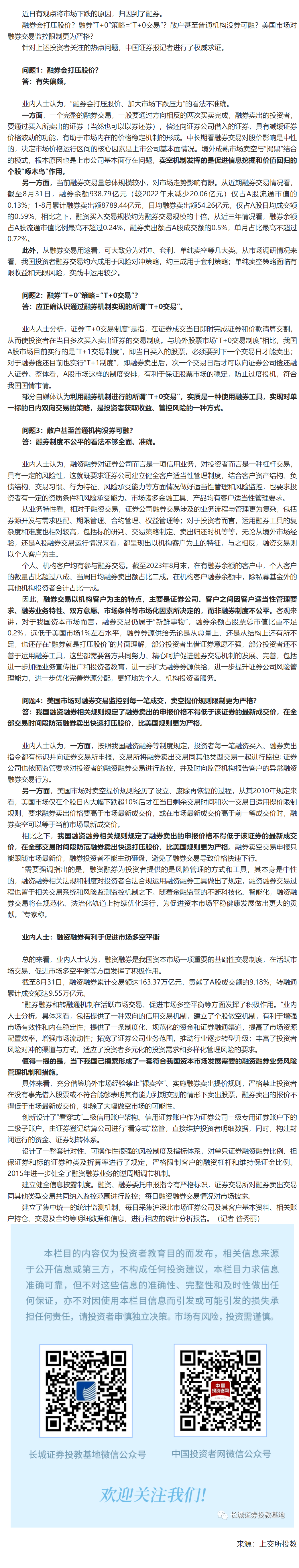 【金融知识宣传月】媒体视角丨融券会打压股价?融券“T+0”策略=“T+0交易”?权威求证来了