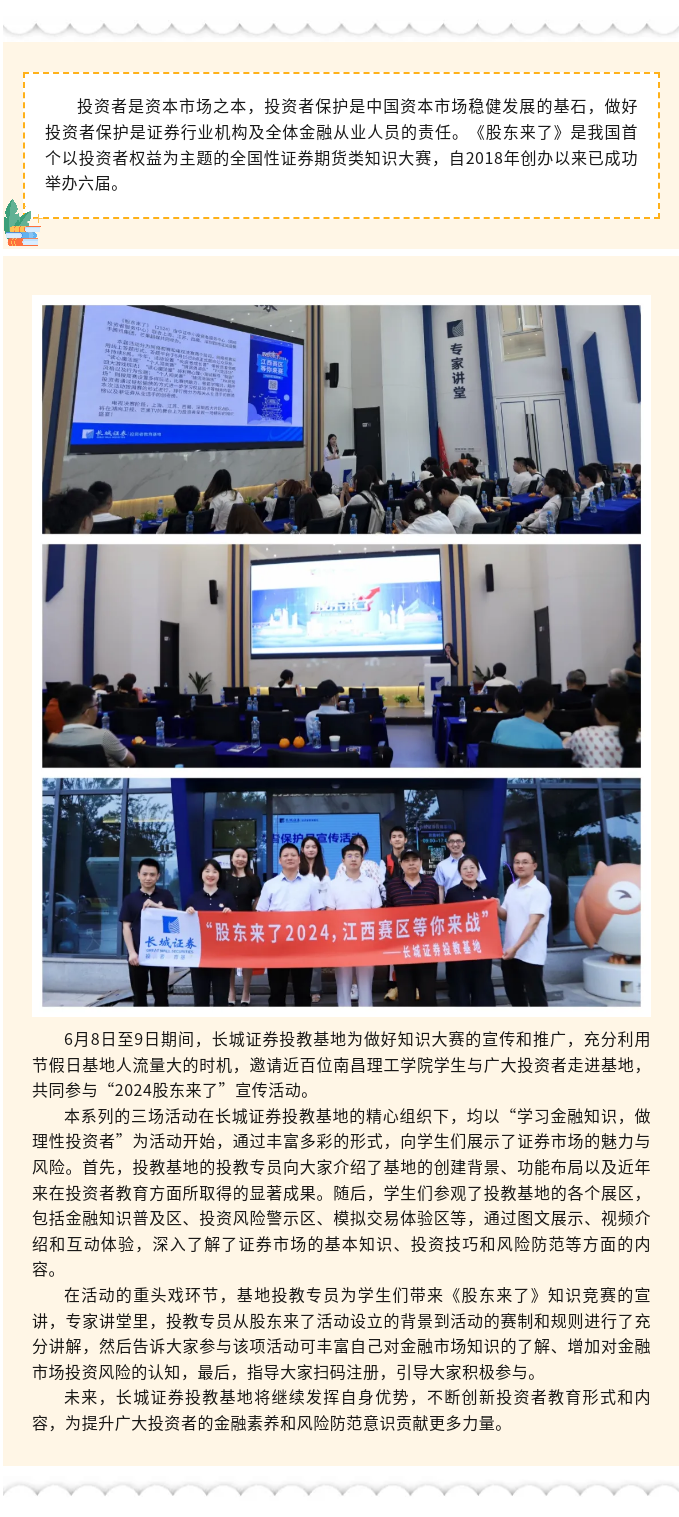 【城·活动】全国防范非法证券期货基金宣传月 长城证券投教基地开展“2024股东来了”宣传活动