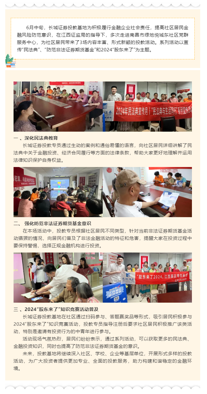 【城·活动】“深化民法典教育 强化防范非法证券期货基金意识”—长城证券投教基地走进南昌市绿地悦城东社