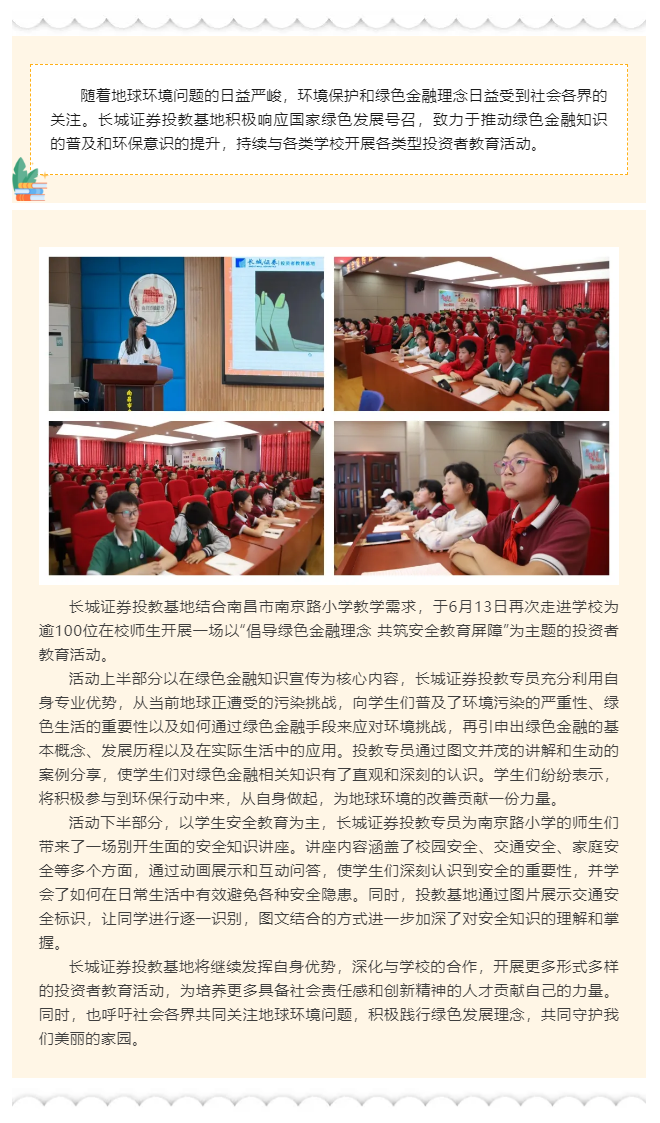 【城·活动】投教进百校_“倡导绿色金融理念 共筑安全教育屏障”—长城证券投教基地走进南京路小学