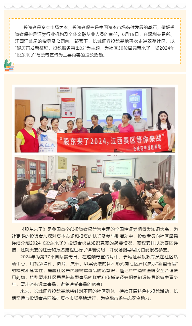 【城·活动】踔厉奋发新征程 投教服务再出发—走进翠苑社区开展2024“股东来了”活动