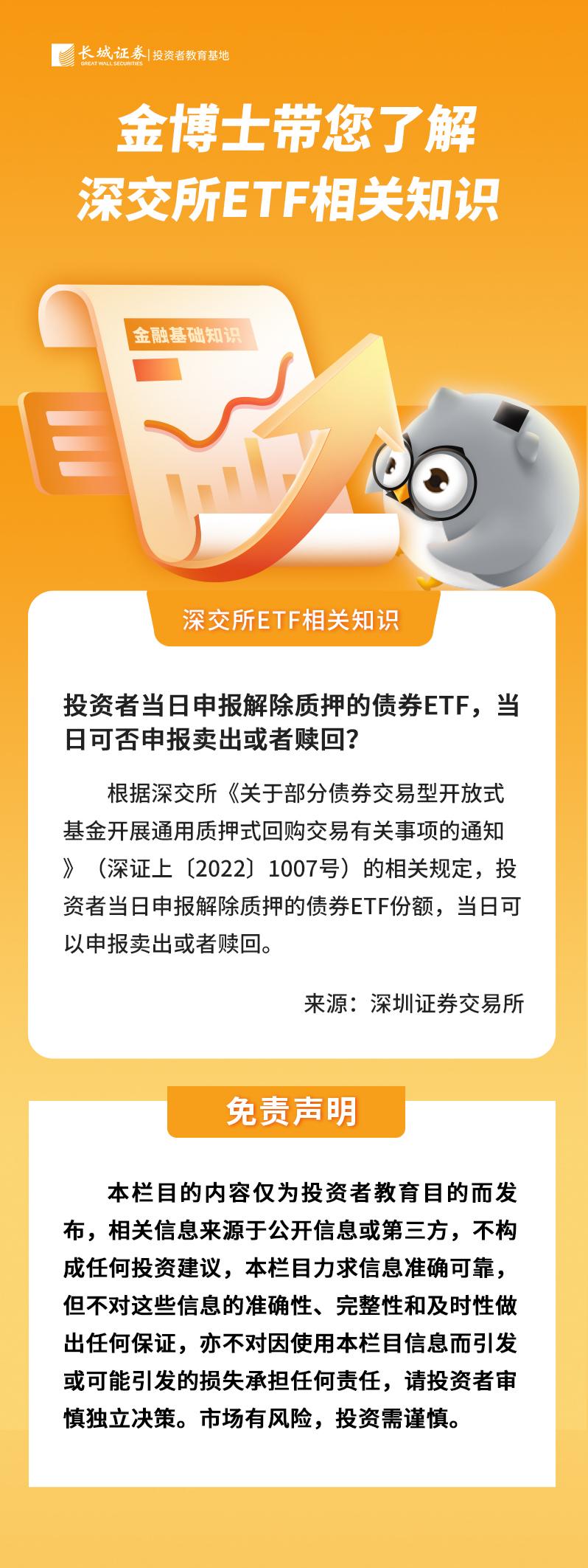 投资者当日申报解除质押的债券ETF,当日可否申报卖出或者赎回?