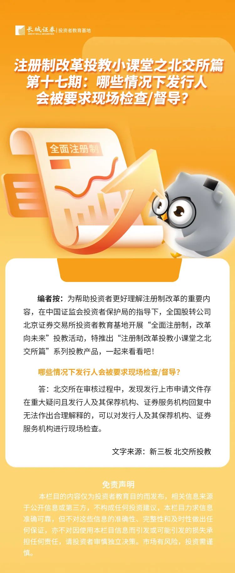 【金融知识宣传月】注册制改革投教小课堂之北交所篇丨第十七期:哪些情况下发行人会被要求现场检查督导?